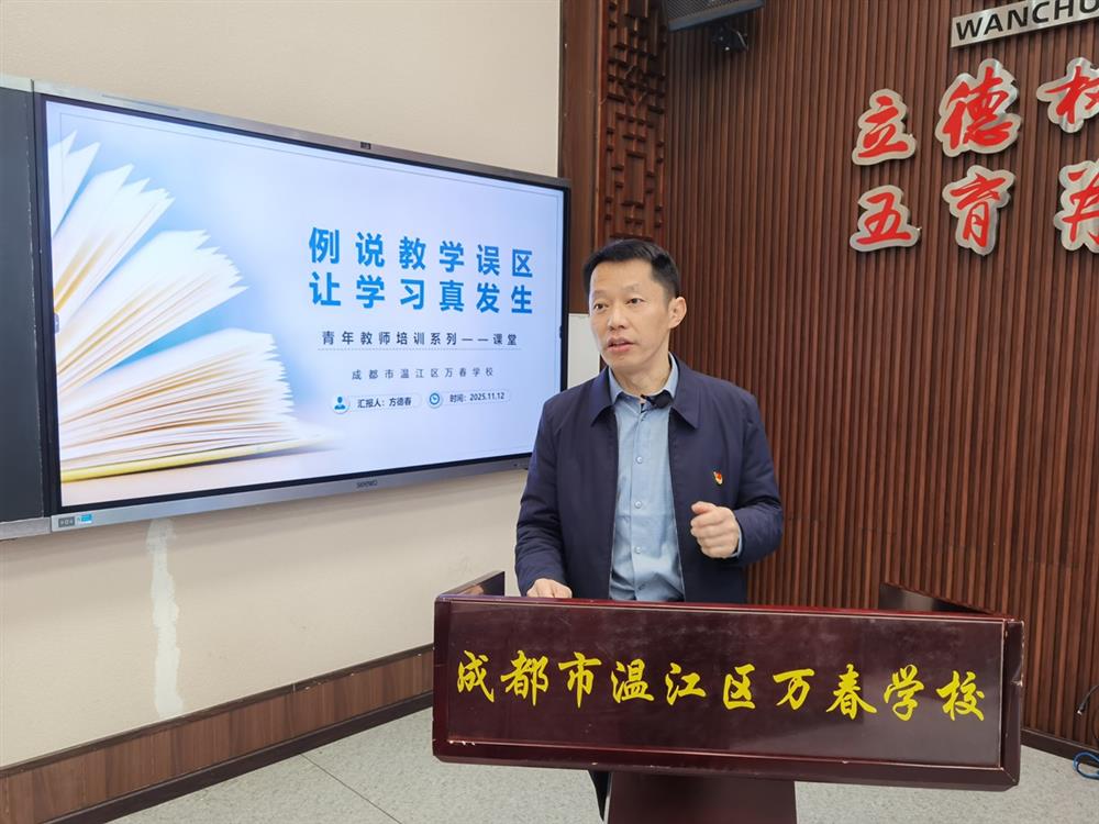 “兴趣是学习的开始!”“用自己的专业好好工作,也幸福地生活!”。11月12日上午,在温江区万春学校青年教师专题培训会上,成都市学科带头人、学校党总支书记方德春的经典话语掷地有声,引发了全场青年教师的深深共鸣。为助力青年教师夯实教学根基、提升课堂实效,让学习在课堂中真实发生,由教师发展中心副主任凌媚主持的本次专题培训,聚焦“例说课堂误区”主题,为全校35周岁以下青年教师带来了一场接地气、有深度、可操作的教学赋能指导。