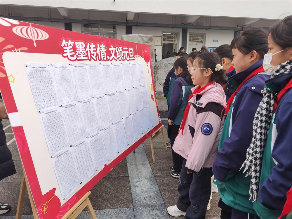 师生共融,喜迎新年。活动中,班主任、科任教师全程引导,与学生共同创作、共同歌唱,校园处处洋溢着喜迎新年的热烈气氛。学校特别设置多元展示平台:活动后分年级、分类别评选优秀作品,颁发“最佳小歌手”“创意之星”“科技之星”“笔墨之星”等奖项,并通过校园宣传栏、公众号、广播站等渠道集中展播展示,让每一个孩子的努力都被看见、每一份爱国情怀都被传递。