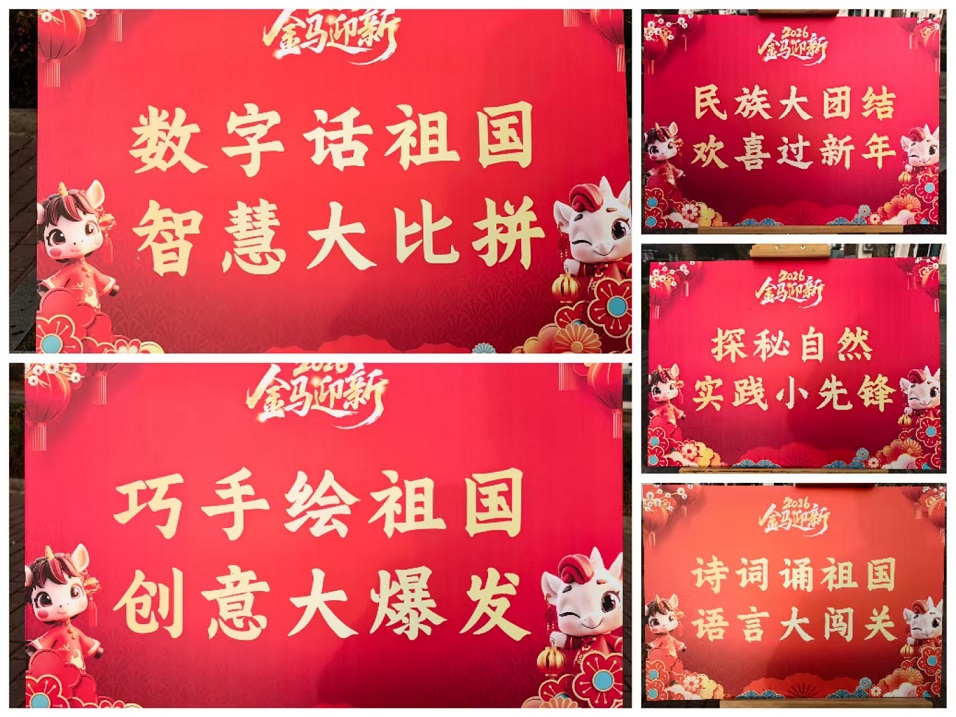 主题融合,彰显万春特色。本次活动紧密围绕学校“生命如春、生长万春”的教育理念,以“马”和“祖国”为主题线索,分别设计了一年级“骏马迎春”和二年级“童心向祖国”两大趣味闯关体系。一年级的孩子们手持“‘千里马’成长通行手册”,在“万马奔腾拼读音”“骏马数学转转乐”“金马踏歌贺新年”等融合学科与年味的关卡中展现所学;二年级学生则通过“诗词诵祖国”“数字话祖国”“巧手绘祖国”等环节,将爱国情怀与学科知识有机融合,彰显万春学子向阳而生的精神风貌。